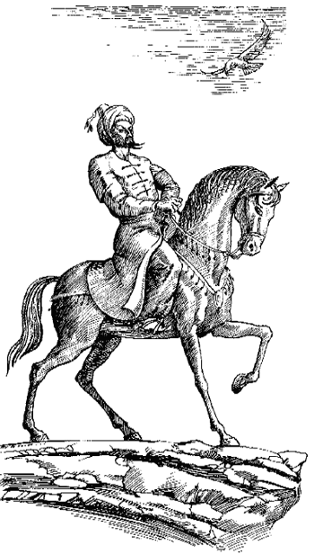 Іслам-Ґірей повернув коня і повільно почав спускатися понад урвищем, вирізьблюючись у світлі призахідного сонця дивним монументом самотності.