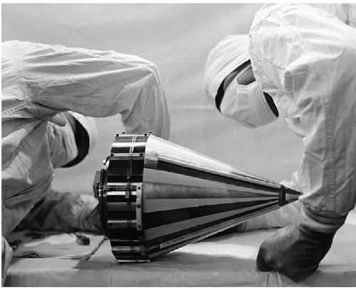 Рис. 1.13. Зонды «Рейнджер-3…5» должны были не только передавать изображения лунной поверхности, но и доставить на нее сейсмометры, заключенные для амортизации удара в шарообразный деревянный контейнер.