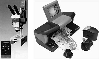 Безусловно, для того чтобы всесторонне и с высоким качеством провести оценку предлагаемых параметров, была необходима и соответствующая аппаратура. Приборы, применявшиеся большинством экспертов для оценивания (стереоскопический бинокулярный микроскоп МБС-2 и прибор «Ультрамаг-С6» в экспертной комплектации), показаны на рис. 1.1.25.