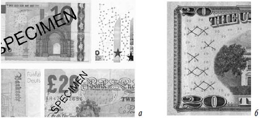 Теперь рассмотрим перечисленные традиционные способы защиты более детально. Оговоримся сразу, что развитие защитных технологий идет бурными темпами, объем книги ограничен (да и рисунки – чернобелые), и поэтому мы поговорим лишь о наиболее распространенных или наиболее выразительных защитных признаках.