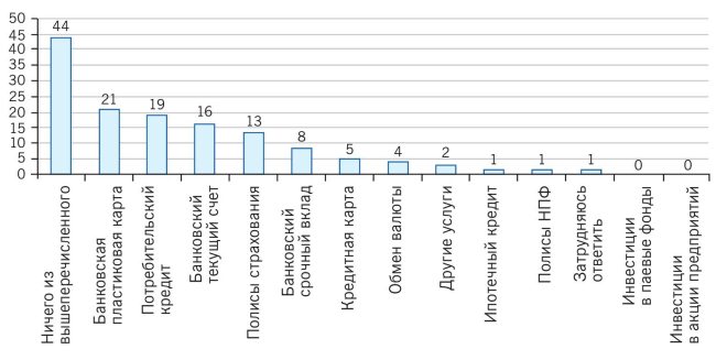 Рис. 1.8. Использование населением различных финансовых услуг, % респондентов