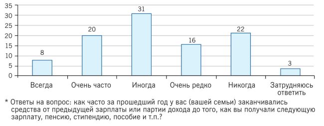 2. Жизнь по средствам. Текущие расходы 28 % россиян систематически превышают их текущие доходы (рис. 1.10). Для малообеспеченного населения этот показатель составляет 40 %. Также было отмечено, что малообеспеченное население чаще берет деньги взаймы, чтобы покрыть разницу. В России до сих пор важным фактором является возможность взять деньги в долг у родственников.