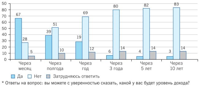 • только 9 % взрослого населения планируют свои финансы на период, превышающий шесть месяцев, и лишь 0,5 % – превышающий один год;