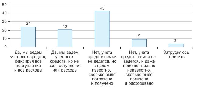 1. Ведение личного бюджета. Менее половины россиян (45 %) ведут систематический учет своих личных средств (рис. 1.9).