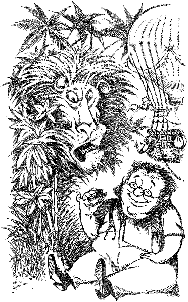 – Отой же звір, – відказав Буртіус. – Він так мене налякав, що я знепритомнів з переляку, точніше, е-е-е, заснув з несподіванки! От я йому зараз покажу, – рішуче вигукнув хоробрий дослідник, кинувшись до своєї повітряної кулі.