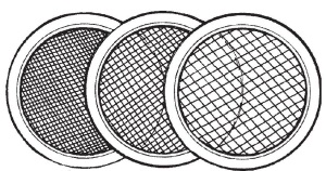 Металлические сита применяют для сортировки живого корма и мальков рыб. Диаметр отверстий зависит от назначения сита (рис. 6).
