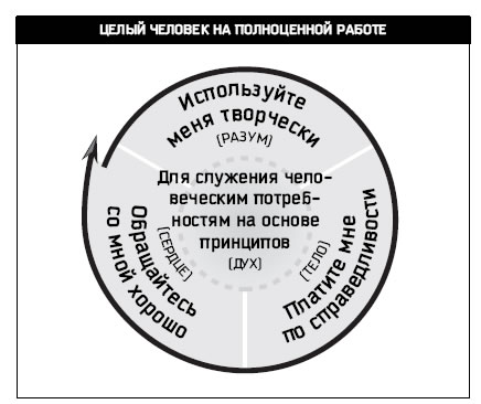 Обратите внимание, что мы рассмотрели все четыре составляющие парадигмы целого человека – тело, интеллект, сердце и, наконец, дух (который разделен на две части – бессмысленность работы и беспринципность при ее исполнении). Дело в том, что если пренебречь хотя бы одной из четырех составляющих человеческой природы, вы превращаете человека в существо, в вещь, а как с ними обращаются? Их нужно контролировать, управлять ими и прибегать к методу «кнута и пряника», чтобы мотивировать их.