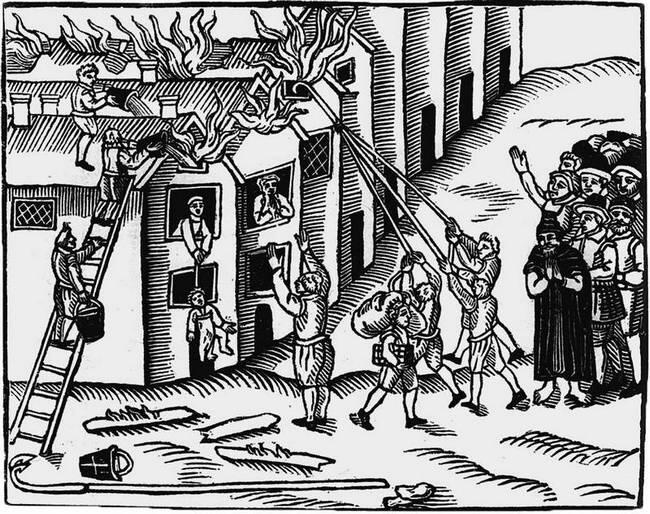 Пожар в Лондоне в 1612 г. Старинная литография