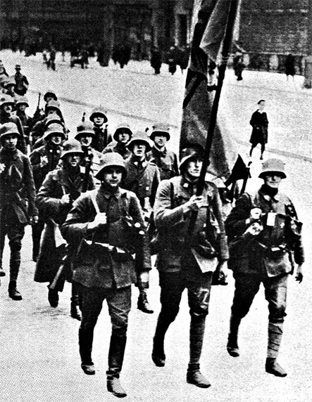 Спустя три года и пару месяцев, 11 января 1923 г., войска Франции в очередной раз вступили на территорию Рурской области[17]. Президент Эберт объявил о политике «пассивного сопротивления» захватчикам. К этому времени часть фрайкоров вошла в состав рейхсвера, из другой части фрайкоров были организованы части нелегального рейхсвера – так называемый «черный рейхсвер» и различные спортивные и патриотические объединения. На территории, примыкающей к Рурской области (земли Вестфалия и Ганновер), также существовали упомянутые объединения. Во главе этих объединений находился один из создателей первых фрайкоров генерал-лейтенант фон Овен, уволенный в отставку из рейхсвера после капповского путча. Несмотря на установку президента, командующий вестфальским военным округом приказал рейхсверу передать упомянутым объединениям оружие. В отличие от всего предыдущего периода своей деятельности, теперь добровольцы действовали уже как подпольная армия. Весной 1923 г. Рур захлестнула волна террористических актов, направленных против оккупантов. Взрывались мосты, гибли предатели и пропадали солдаты противника. Несмотря на все ожидания всеобщего восстания, не последовало. 26 мая 1923 г. за взрыв одного из мостов французами был расстрелян обер-лейтенант Альберт Лео Шлагетер, ветеран прибалтийских фрайкоров и член национал-социалистической партии Германии. После его смерти противостояние захватчикам постепенно сошло на нет.