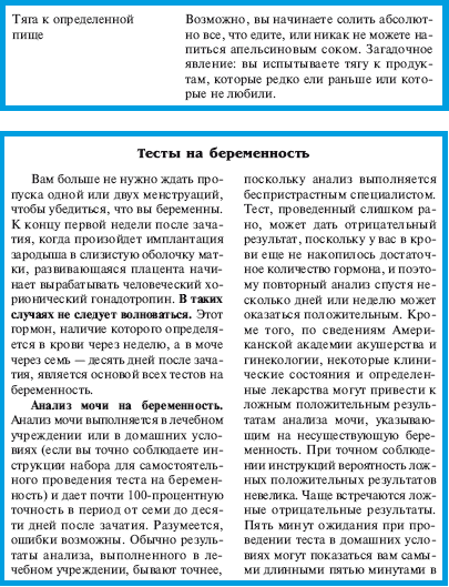 Анализ мочи выполняется в лечебном учреждении или в домашних условиях (если вы точно соблюдаете инструкции набора для самостоятельного проведения теста на беременность) и дает почти 100-процентную точность в период от семи до десяти дней после зачатия. Разумеется, ошибки возможны. Обычно результаты анализа, выполненного в лечебном учреждении, бывают точнее, поскольку анализ выполняется беспристрастным специалистом. Тест, проведенный слишком рано, может дать отрицательный результат, поскольку у вас в крови еще не накопилось достаточное количество гормона, и поэтому повторный анализ спустя несколько дней или неделю может оказаться положительным. Кроме того, по сведениям Американской академии акушерства и гинекологии, некоторые клинические состояния и определенные лекарства могут привести к ложным положительным результатам анализа мочи, указывающим на несуществующую беременность. При точном соблюдении инструкций вероятность ложных положительных результатов невелика. Чаще встречаются ложные отрицательные результаты. Пять минут ожидания при проведении теста в домашних условиях могут показаться вам самыми длинными пятью минутами в вашей жизни, а ваша реакция может являть собой смесь разнообразных чувств. Если вы – независимо от результатов теста – не исключаете возможности беременности или подозреваете, что вы беременны, позаботьтесь о себе и о своем ребенке, как будто беременность подтвердилась. Если вам нужно знать абсолютно точно, выполните анализ крови, который дает более достоверные результаты, чем анализ мочи.