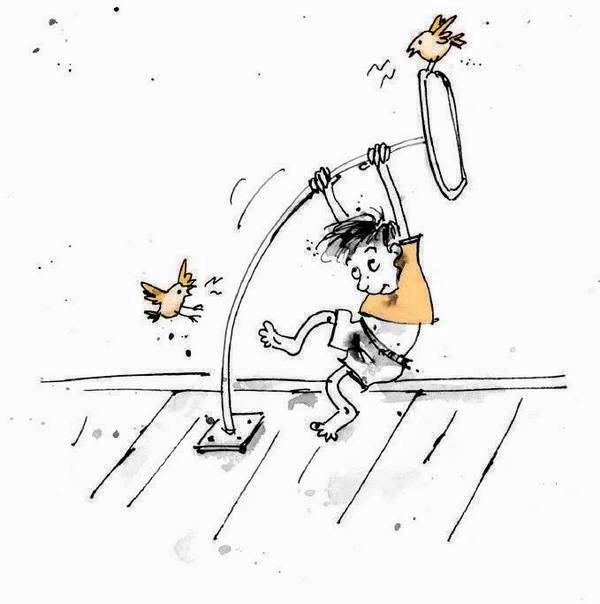 Черёмуха уже совсем поспела. Даша ела её и плевала косточки вниз. Чтобы на следующий год целая черёмуховая роща выросла. А Илюше черёмуха из-за косточек не понравилась, и он занимался тем, что раскачивал только что поставленную телевизионную антенну. А потом увидел Вертушку и стал проситься вниз.