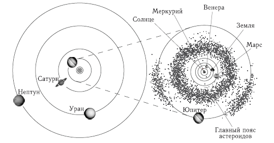 Рис. 2.2. Солнечная система и Главный пояс астероидов