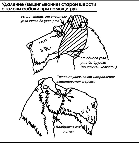 Чистку обычно начинают с головы, затем чистят шею, лопатки, другие части туловища, после этого – хвост и конечности. При чистке нельзя допускать пропусков. Длинную шерсть в местах, где она сильно загрязнена и слежалась, перед чисткой нужно аккуратно разобрать руками, в противном случае собаке будет причинена боль. Сильно загрязненные участки перед чисткой нужно промыть теплой водой.