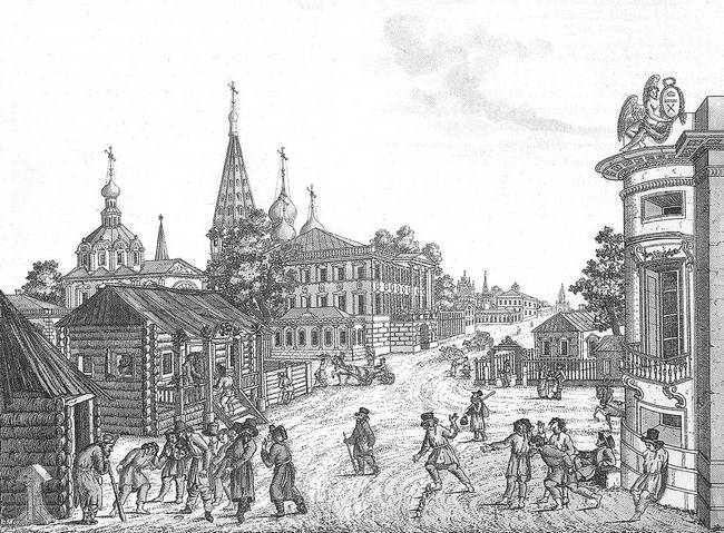 Важные перемены должны были постигнуть Кремль. Но проект В.И. Баженова – грандиозный дворец, да такой, что, по меткому выражению И.Е. Забелина, весь Кремль превращался в одно здание дворца, – к счастью, не осуществился. Зато другой великий архитектор, М.Ф. Казаков, построил в Кремле громадное здание судебных установлений. Екатерина II обеспечила Москву превосходной водой из Мытищ. По ее приказу на Москве-реке вырыли водоотводную канаву. Императрица продолжала развивать Немецкую слободу. Она повелела построить в Лефортове каменный дворец. Знатные вельможи Зубовы, Мусины-Пушкины, Куракины, Разумовские жили не только в центре, но и в Немецкой слободе. В конце XVIII века купечество начинает активно завоевывать место в общественной жизни Москвы. «Именитые граждане» Долговы, Куманины, Кирьяковы, Уваровы и прочие строят в Первопрестольной богатые усадьбы.