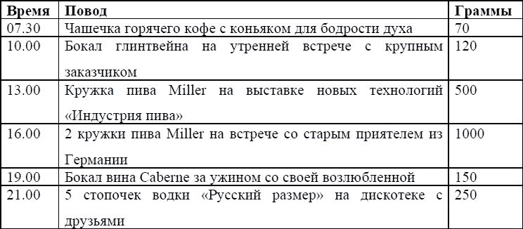 Как-то мы ехали в поезде с одним PR-консультантом, разговорились как обычно и решили подсчитать, сколько в среднем выпивает спиртосодержащего один среднестатистический пиарщик-мужчина в сутки. Вот, что у нас вышло.
