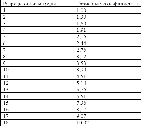 Абсолютное возрастание тарифных коэффициентов представляет собой разницу между тарифными коэффициентами смежных разрядов.