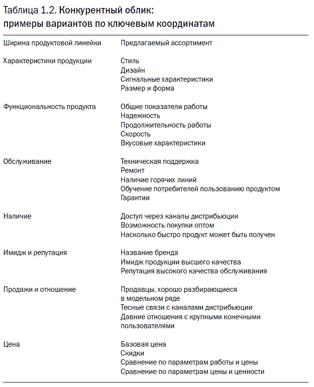 Но каким образом организация разработает стратегию, которая позволит ей создать и удержать дифференциацию по ценности, хорошо воспринимаемую потребителями? Хотя мы не ставили задачу представить полный список способов ведения конкуренции (или разновидностей дифференциации), но, как показано в табл. 1.2, тех, к которым прибегают организации в любой конкурентной среде или отрасли, достаточно много.