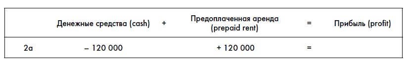 Итак, компания заплатила за аренду 120 000 руб., т. е. объем денежных средств уменьшился на 120 000. Однако не забывайте, что часть денег компания заплатила вперед, причем за два года. При рассмотрении этой операции надо учесть два соображения: