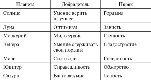 Планеты, влияющие на пороки и добродетели человека