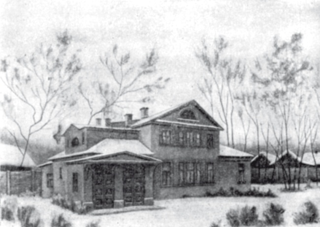 Дом М.С. Щепкина в Большом Каретном переулке, 16. Акварель Б.С. Земенкова
