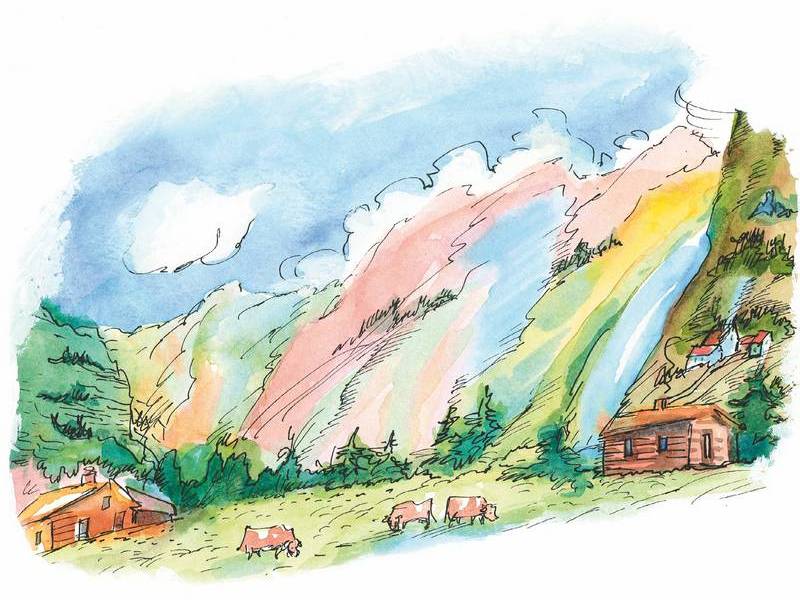 – Ну, слушайте, – сказала бабушка. – Горы – это громадные скалы, долины, высокие вершины и снова долины. Горы громоздятся друг на друга; одни из них побольше, другие поменьше. Можно идти много-много дней, и всё равно не увидишь ничего, кроме горных вершин, горных долин и неба. Только в горах поймёшь, как хорош настоящий горный воздух…
