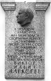 На фасаде дома установлена гранитная мемориальная доска, посвященная Виктору Ильичу Алексееву, со скульптурным профилем великого спортивного педагога[254].