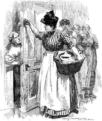 Прачки у дверей дома предлагают свои услуги. Рисунок из журнала “Punch”. 1892