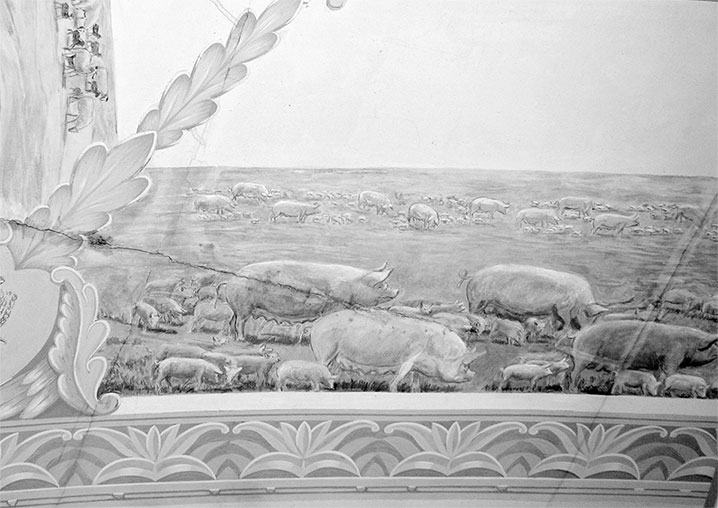 Павильон № 56 «Ветеринария» (1939, 1954). Роспись потолка (1939). Художник А. Дейнека (?)
