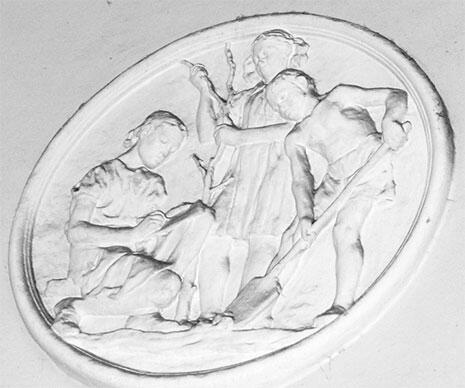 Барельефы в интерьере павильона 8 «Юные натуралисты» (1954). Архитекторы Н. Гришин, Д. Витухин, А. Гольдин