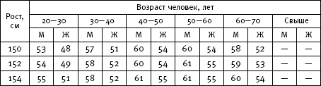 Таблица нормальной массы тела взрослого человека в зависимости от возраста
