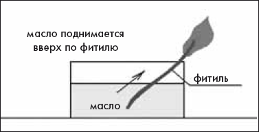 Как же работает светильник из фитиля? Как он перекачивает масло? Мы можем убедиться, что он работает как насос, используя свойство жидкостей втягиваться в тонкие капилляры.
