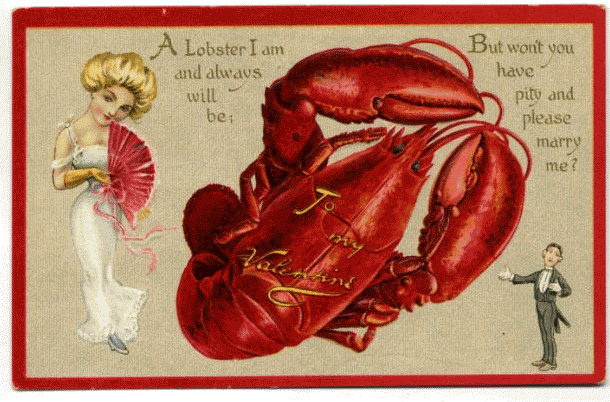 "Я лобстер и лобстером буду всегда; но сжалься и замуж иди за меня!" Поздравительная открытка к Валентинову дню