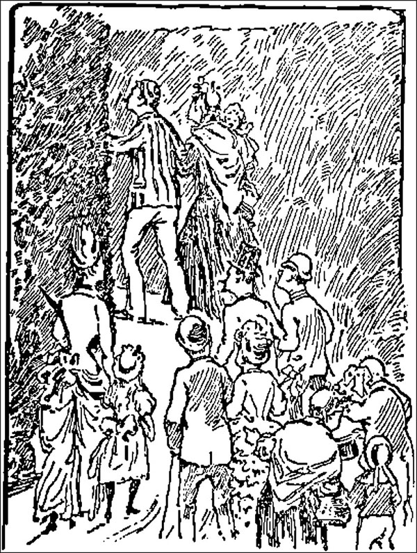 They picked up various other people who wanted to get it over, as they went along, until they had absorbed all the persons in the maze. People who had given up all hopes of ever getting either in or out, or of ever seeing their home and friends again, plucked up courage at the sight of Harris and his party, and joined the procession, blessing him. Harris said he should judge there must have been twenty people, following him, in all; and one woman with a baby, who had been there all the morning, insisted on taking his arm, for fear of losing him.