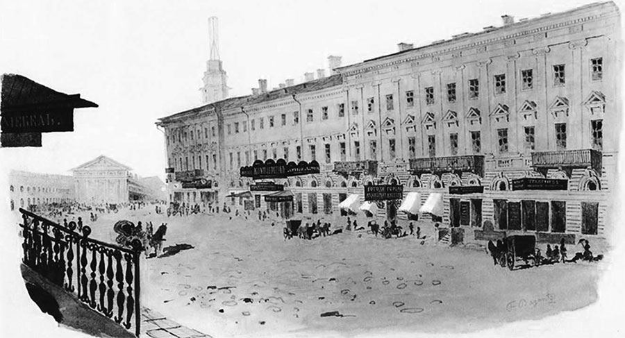 Невский проспект был своеобразным подиумом, по которому, от кондитерской к кондитерской, фланировала праздная, по преимуществу мужская, публика. Как писал Иван Гончаров, задача столичного франта – «пройти весь Невский проспект, не сбившись с усвоенной себе франтами иноходи, не вынув ни разу руки из заднего кармана пальто и не выронив из глаза искусно вставленной лорнетки».