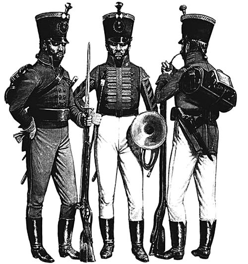 Кроме того, следует учитывать, что даже в егерских частях нарезное оружие по штату полагалось только унтер-офицерам и наиболее метким стрелкам – на егерскую роту штуцеров «образца 1805 года с кортиком» приходилось всего 12 единиц. На обычный же пехотный полк (линейная пехота) в начале XIX века полагалось 16 штуцеров; в 1809 году их число было увеличено в два раза, но и это количество, конечно, не могло сыграть серьезной роли в бою.