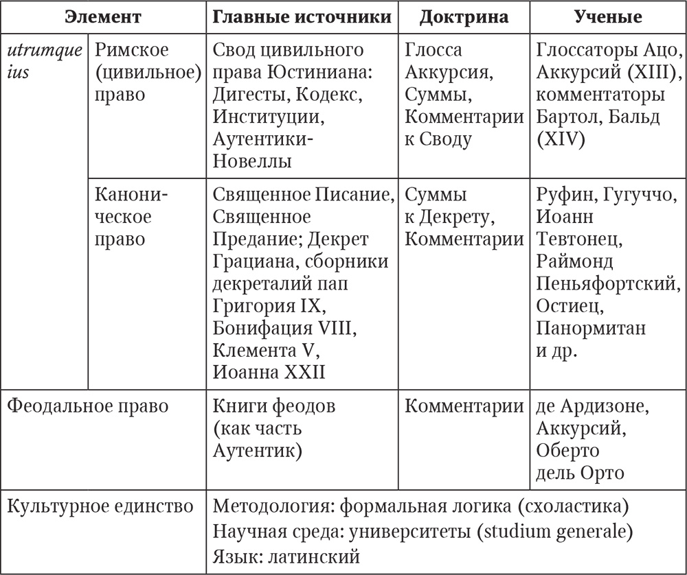Таблица 1.2. Структура ius commune