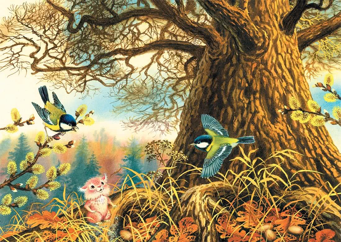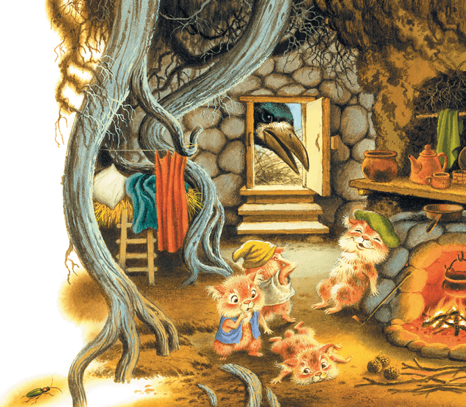 Тука работал терпеливо и старательно. Стены вышли ровными, а окошки – аккуратно круглыми. Как этого добиться, кыш додумался позапрошлой весной. При строительстве дома он случайно оставил на начатой кладке свиток бересты и, забывшись, обошёл его камнями. Когда раствор застыл, Тука опомнился, вынул бересту и обомлел: какой аккуратный получился проём! Оставалось лишь вставить кусочек слюды, и окошко было готово.