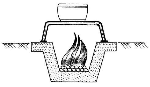 Рис. 4. Приготовление первого блюда на открытом огне (костер)