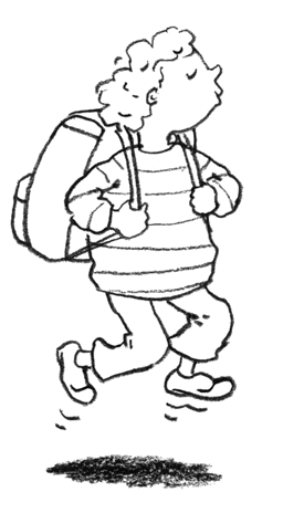 Но пора всё никак не приходит, и Фридер никуда не идёт – и ранец не идёт, а только нетерпеливо ждёт, когда же его наденут на Фридерову спину, и подарок первокласснику не идёт, и бабушка тоже.