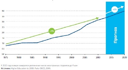 Численность студентов в мире, получающих образование за границей (млн человек) (рис. 1.4)