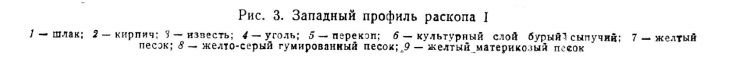 Один из первых стратиграфических разрезов культурного слоя Москвы: 1953 г., раскопки М.Г. Рабиновича на устье Яузы (на месте дома на Котельнической набережной)