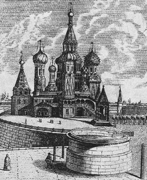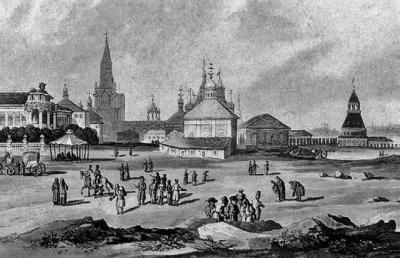 Вид на Ивановскую площадь в первой трети XIX в. В центре – собор Николая Гостунского. Конец XVIII в.