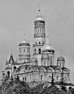 Вид на Ивановскую колокольню и Архангельский собор со стороны Москвы-реки