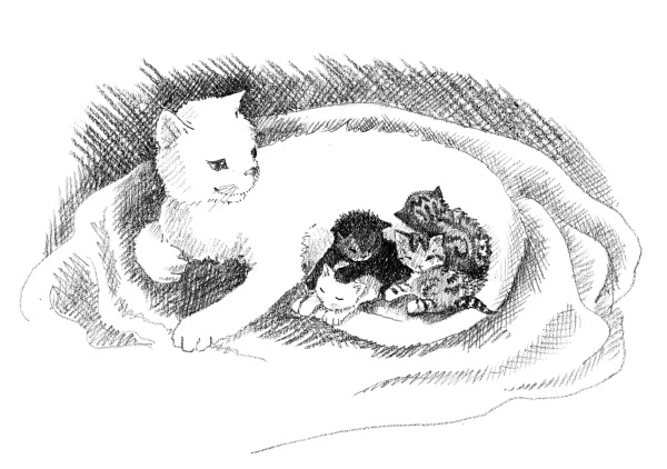 – Мы точно не знаем. Мама сегодня отвезёт её к ветеринару. Мы вчера вечером посмотрели на неё повнимательнее и поняли, что она уж слишком раздалась! Мама, правда, немного рассердилась… Нет, она тоже рада, но говорит, что теперь хлопот не оберёшься, и потом ещё надо будет всех котят пристроить. – Эмили нахмурилась. – Но мы с Леей собираемся уговорить маму оставить одного котёночка себе.