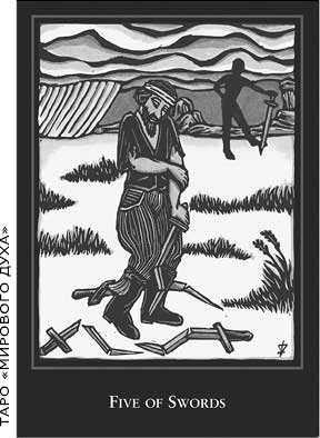 В качестве примера я возьму Пятерку Мечей из Таро «Мирового Духа» Лорен О’Лири.
