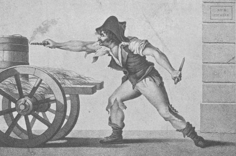 Подготовка взрыва на улице Сен-Никез. Литография XIX века