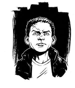 Вигго набирает с земли камешков и целится в фонарь. Промахивается, и первый камень, отскочив, летит в случайное окно.