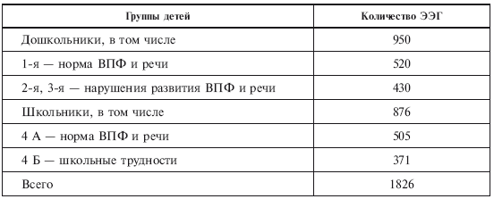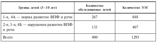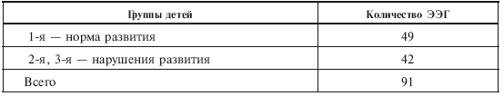 Среди детей дошкольного возраста с последствиями перинатального поражения ЦНС сравнительный анализ ЭЭГ производился по трем основным описанным выше группам (1, 2, 3-й). Было проведено также сравнение данных ЭЭГ группы детей 7 лет с последствиями перинатального поражения ЦНС с нормой развития (из 1-й группы и группы 4А) и контрольной группой практически здоровых детей того же возраста (из базы данных архива лаборатории нейробиологии программирования действий ИМЧ РАН, руководитель лаборатории – доктор биологических наук, профессор Ю. Д. Кропотов).