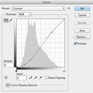 Попробуем сделать этот снимок насыщеннее за счет повышения контраста и смещения общего диапазона светлот в сторону теней. Для этого нам потребуется кривая примерно такой формы, которая показана на илл. 3.3.