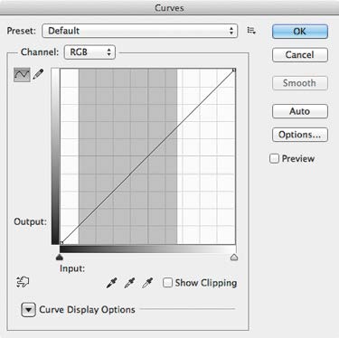 Мы уже знаем, что большая часть цветов может достигать своего максимального насыщения в диапазоне светлот примерно 10–70L. Посмотрим, как этот диапазон выглядит в интерфейсе Curves, основного инструмента цветокоррекции. Рассматривать его работу мы будем в RGB, т. к. это базовая модель представления цвета в цифровой фотографии. Именно к ней сводится интерпретация исходных Raw-данных матрицы, в ней же осуществляется основная обработка в программах по работе с цифровой фотографией.